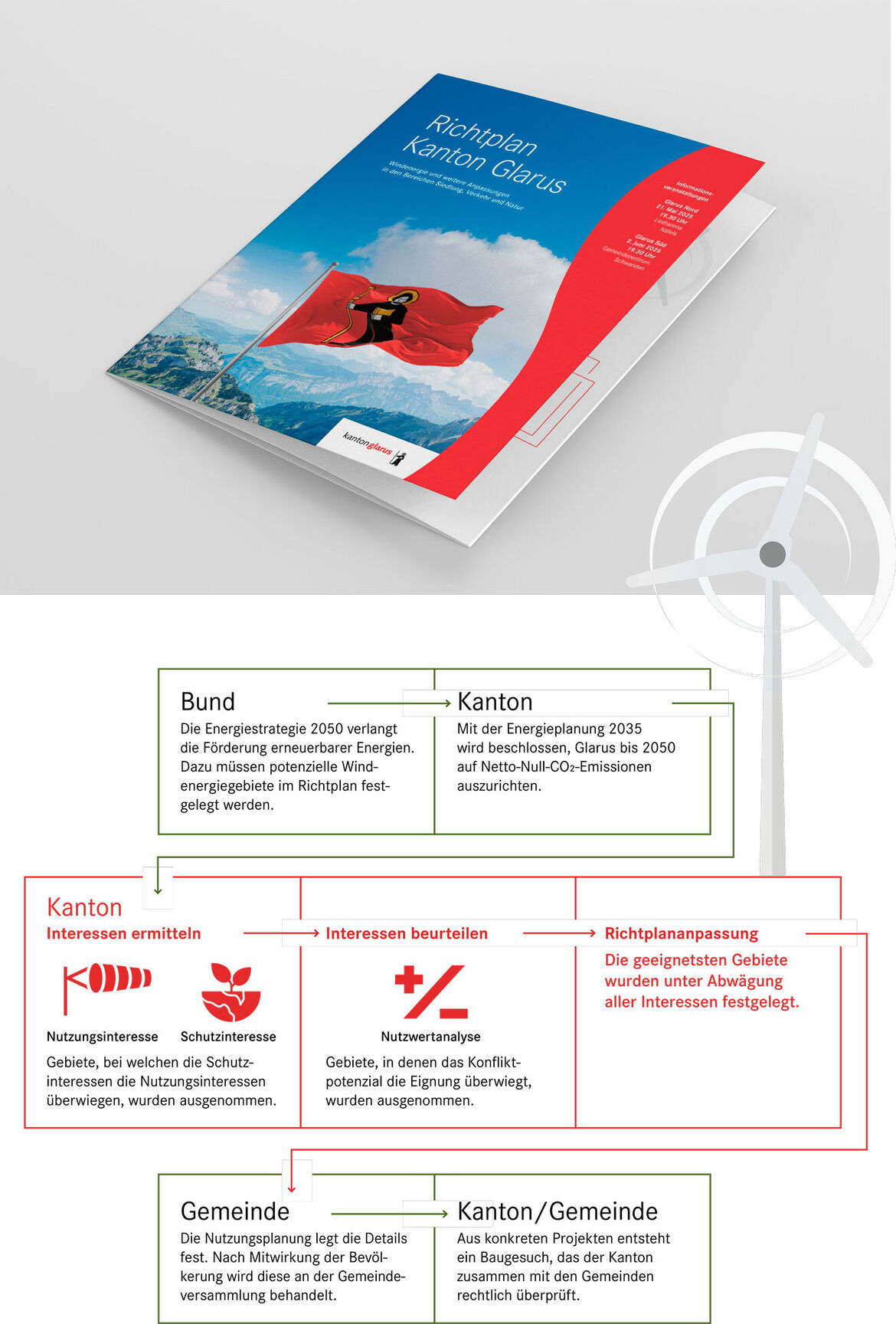 Mit klaren Botschaften, fundierten Fakten und einem transparenten Ablauf unterstützten wir den Kanton Glarus bei der kommunikativen Begleitung der Richtplananpassung zur Nutzung der Windkraft – ein emotional besetztes Thema, das wir für die Bevölkerung verständlich und sachlich aufbereiteten.