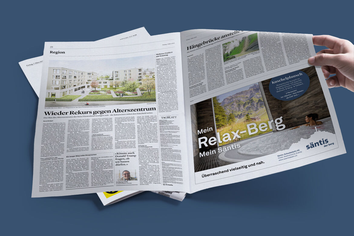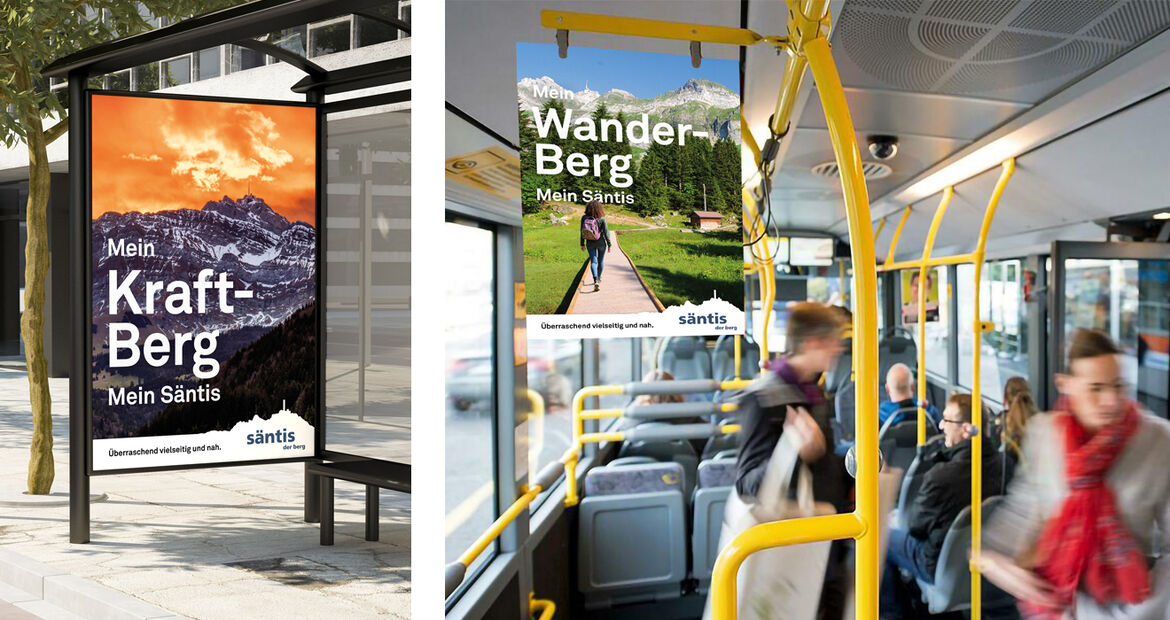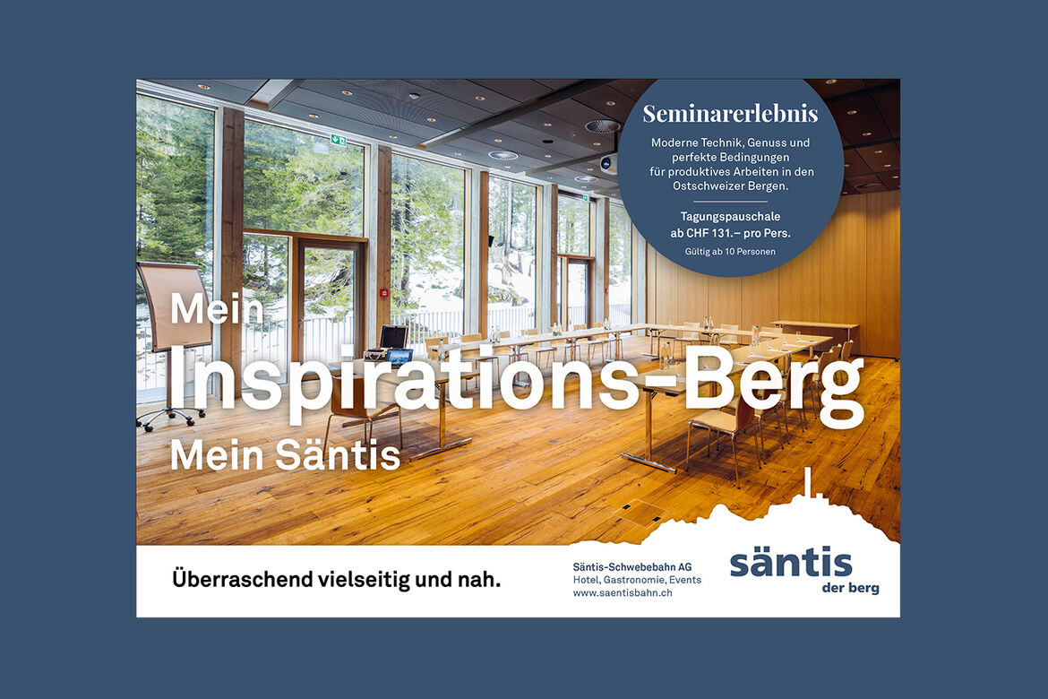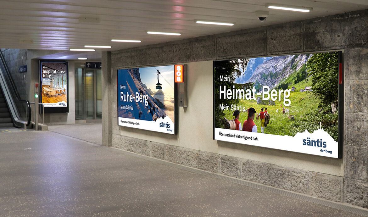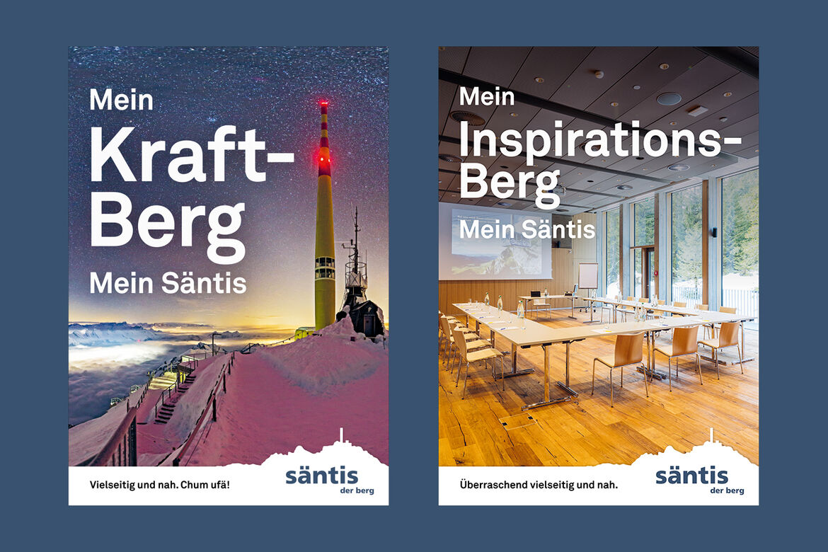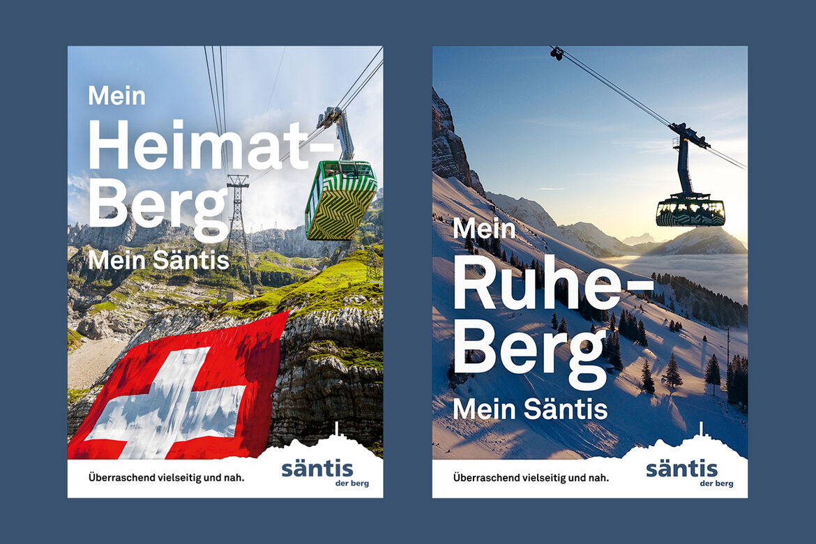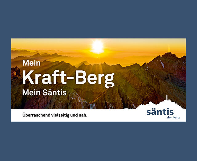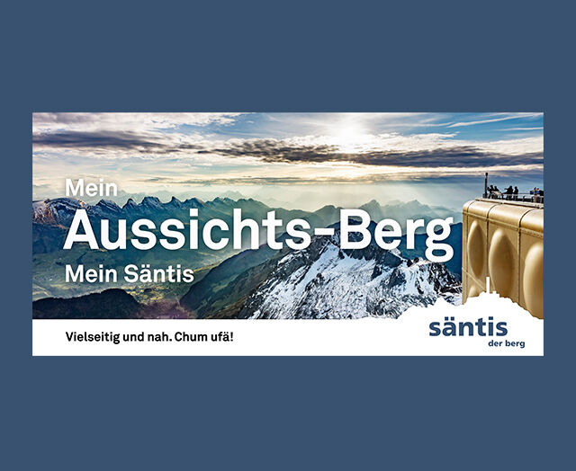 Sichtbar am Horizont, nah im Alltag: Der Säntis verfügt über eine hohe und positive Grundbekanntheit. Gleichzeitig hat eine Marktstudie gezeigt, dass die heutige Angebotsvielfalt des Säntis weniger bekannt ist. Entsprechend konzipierten wir zusammen mit dem Säntis-Team die Awareness-Kampagne («Mein X-Berg. Mein Säntis.» «Überraschend vielseitig und nah.»), damit die Erlebnisvielfalt stärker in den Vordergrund rückt. Die Kampagne fokussiert bewusst auf den Heimmarkt Ostschweiz und wird durch das Säntis-Team geführt.