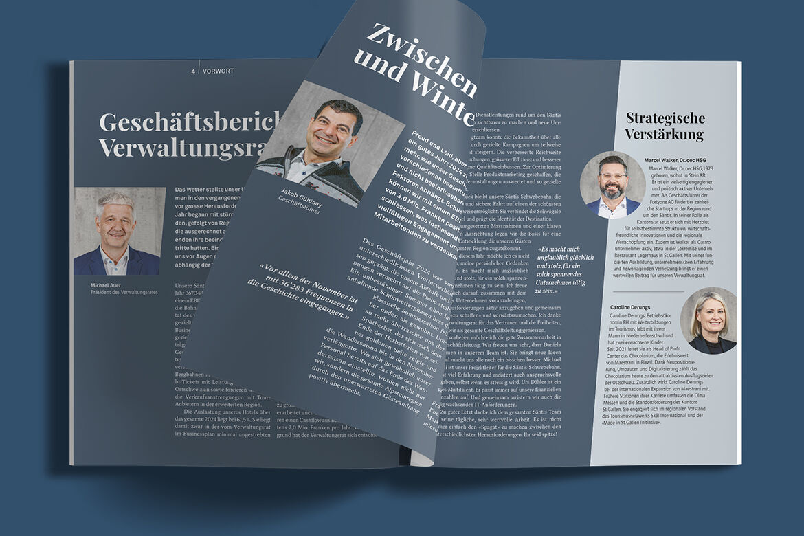 Ein Geschäftsbericht, der nicht nur Zahlen liefert, sondern Lust aufs Lesen macht? Die Säntis-Schwebebahn AG zeigt auch in der dritten Ausgabe ihres Säntis Magazins, wie moderner Unternehmensjournalismus funktioniert: publikumsnah, gestalterisch hochwertig und redaktionell durchdacht.